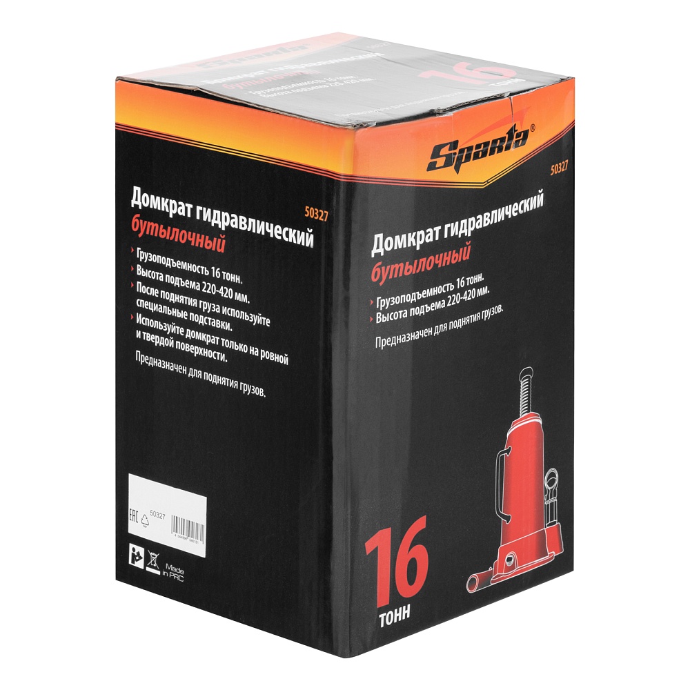 Гидравлический бутылочный домкрат Sparta 50327 рассчитан на подъем грузов весом до 16 т на высоту от 220 до 420 мм. Он пригодится как автолюбителям в гараже, так и профессиональным мастерам в автосервисах. Домкрат обеспечивает плавный подъем груза без особых усилий со стороны пользователя.