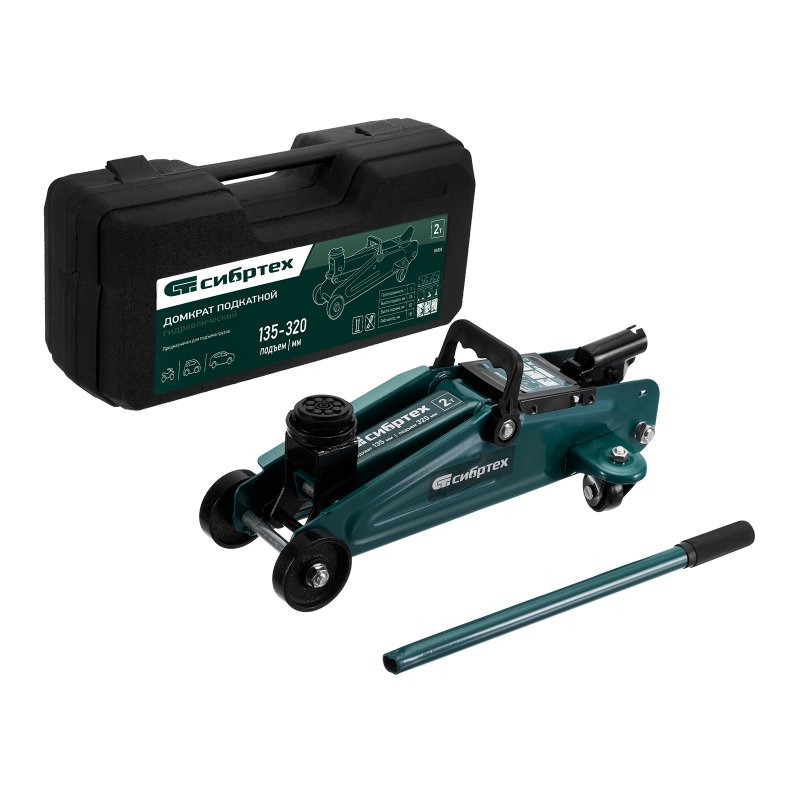 Домкрат гидравлический подкатной, 2 т, 135-320 мм, в пласт. кейсе Сибртех