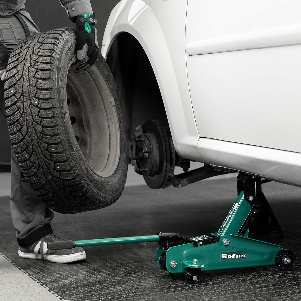 Гидравлический подкатной домкрат Сибртех 50835, поставляющийся в пластиковом кейсе, с высотой подхвата 135 мм, предназначен для подъема грузов массой до 2 т на высоту до 330 мм. Применяется для обслуживания автомобилей со стандартным клиренсом. Компактный домкрат подходит для самостоятельного использования автовладельцами.