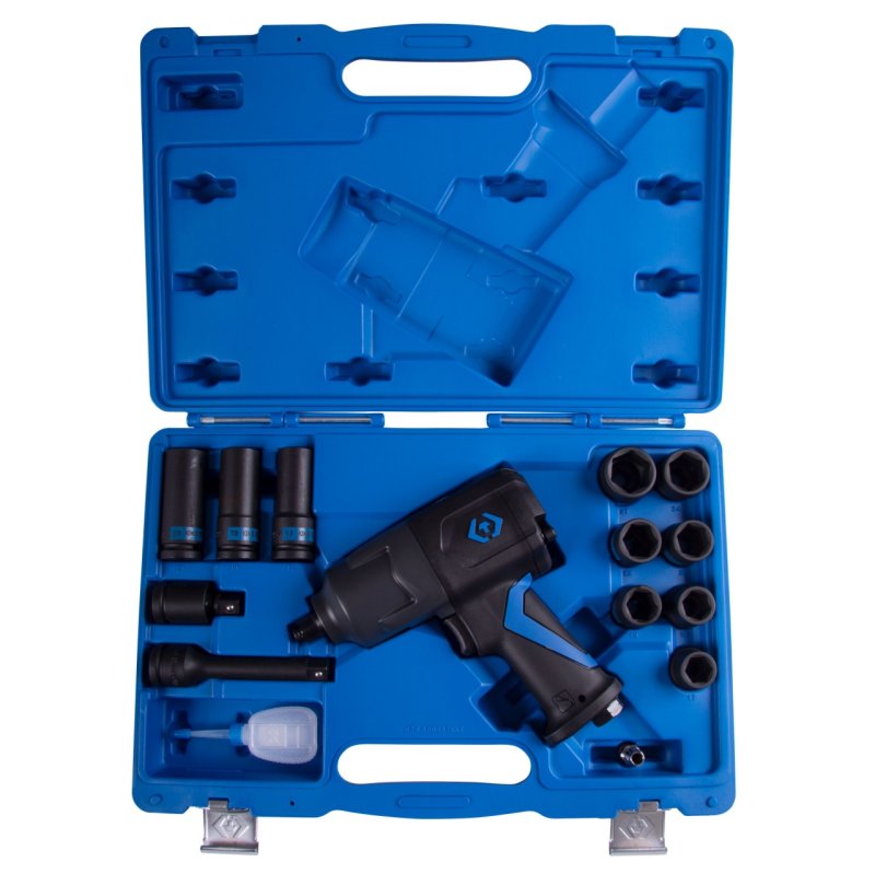 Пневматический ударный гайковерт в кейсе. Высокая мощность и надежность двойного ударного механизма. Подходит для мягких и твердых соединений. Рекомендуется для промышленных работ в тяжелых режимах.
