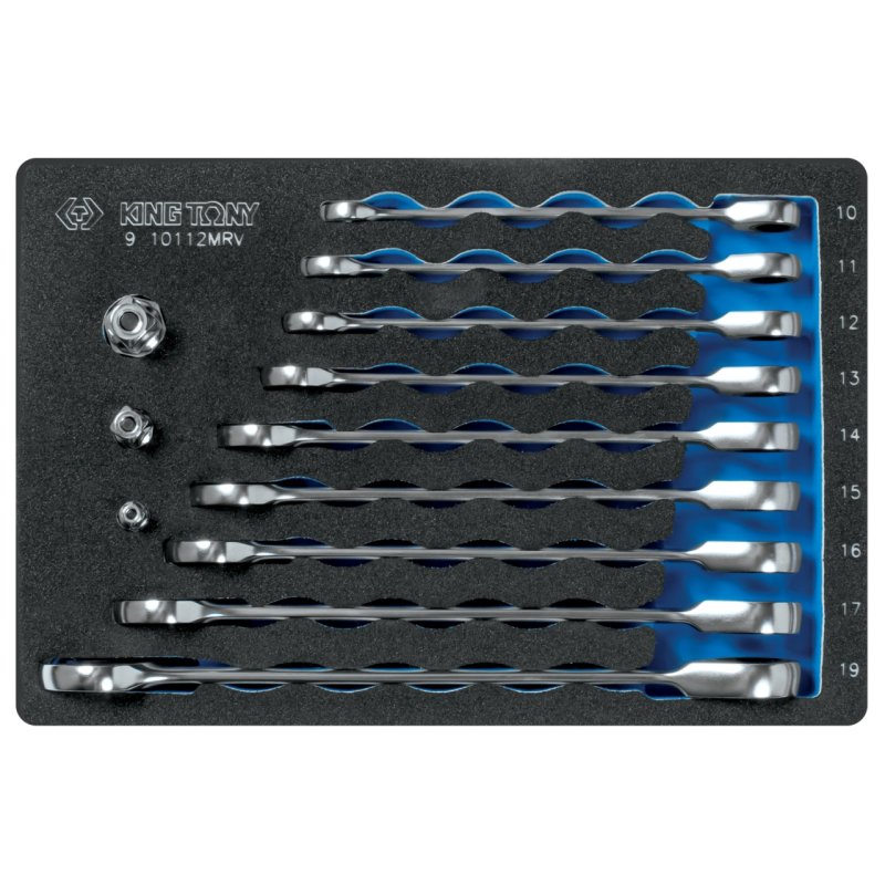 KING TONY Набор комбинированных трещоточных ключей, 10-19 мм, ложемент, 12 предметов KING TONY 9-10112MRV