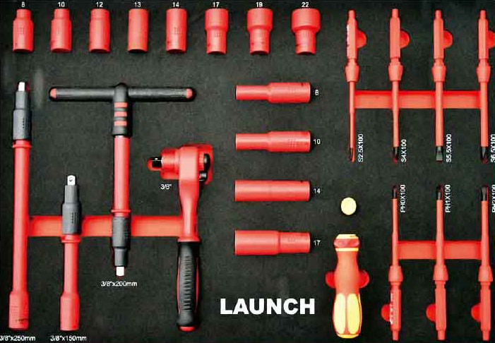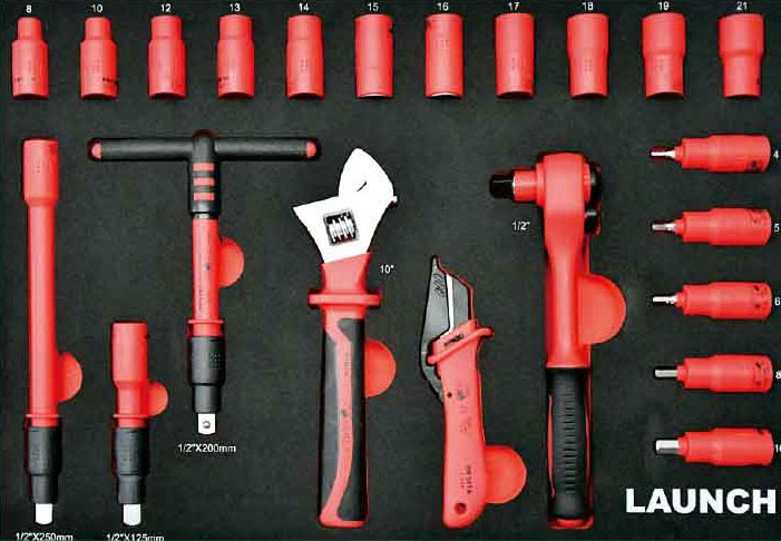 Launch TTH-84 - Набор для технического обслуживания электромобилей ТТН-84 включает наиболее востребованный электроизолированный инструмент, собранный в удобный шкаф на колесах: 2 глубокие полки и 5 малых ящиков.