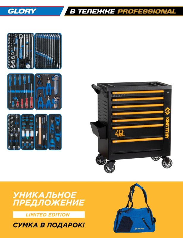 Набор инструментов 152 предмета, "GLORY", в черной тележке KING TONY 9G38-152MRV40 купить в Перми цена ✅ - Все для СТО