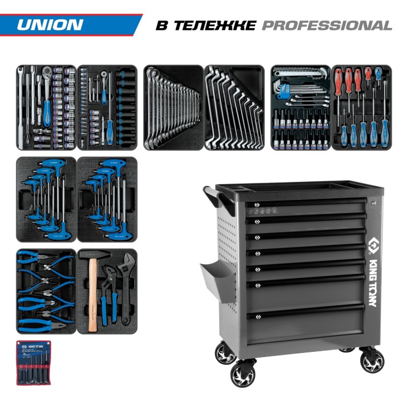 Набор инструментов 173 предмета, "UNION", в серой тележке KING TONY 9G38-000MRG купить в Перми цена ✅ - Все для СТО