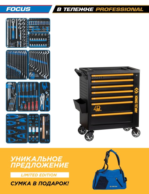 Набор инструментов 188 предметов, "FOCUS", в черной тележке KING TONY 9G38-188MRV40 купить в Перми цена ✅ - Все для СТО