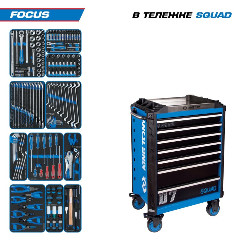 Набор инструментов 188 предметов, "FOCUS", в синей тележке KING TONY 9SQ31-188MRV купить в Перми цена ✅ - Все для СТО
