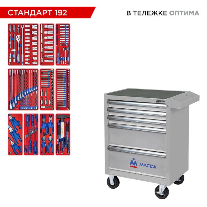 Набор инструментов 192 предмета, "СТАНДАРТ 192", в серой тележке МАСТАК 52-05192G купить в Перми цена ✅ - Все для СТО