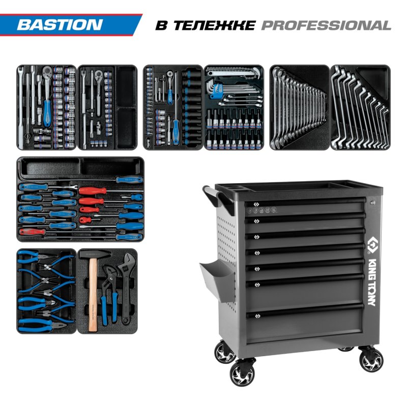 Набор инструментов 204 предмета, "BASTION", в серой тележке KING TONY 9G38-100MRG купить в Перми цена ✅ - Все для СТО