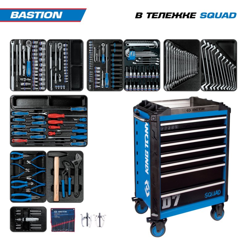 Набор инструментов 204 предмета, "BASTION", в синей тележке KING TONY 9SQ31-100MR купить в Перми цена ✅ - Все для СТО
