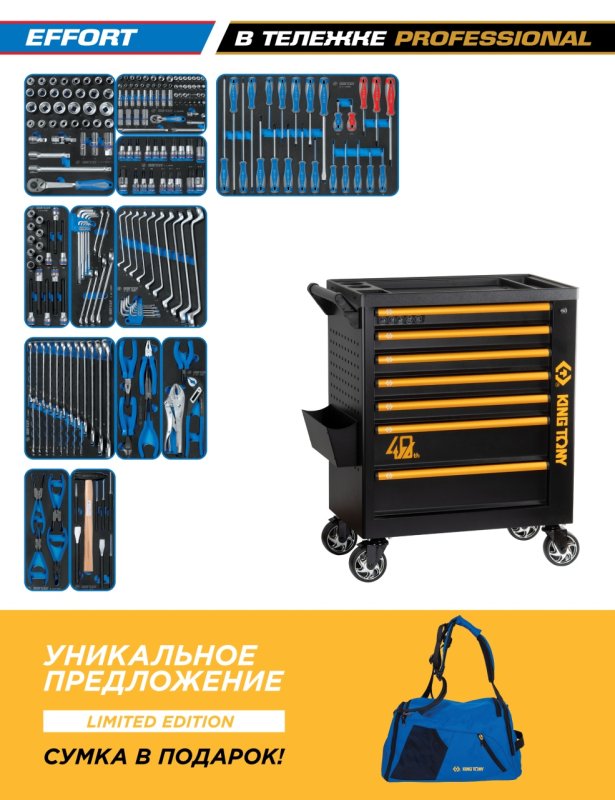 Набор инструментов 235 предметов, "EFFORT", в черной тележке KING TONY 9G38-235MRV40 купить в Перми цена ✅ - Все для СТО