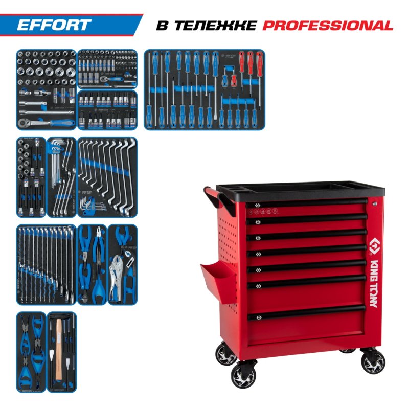 Набор инструментов 235 предметов, "EFFORT", в красной тележке KING TONY 9G38-235MRVR купить в Перми цена ✅ - Все для СТО