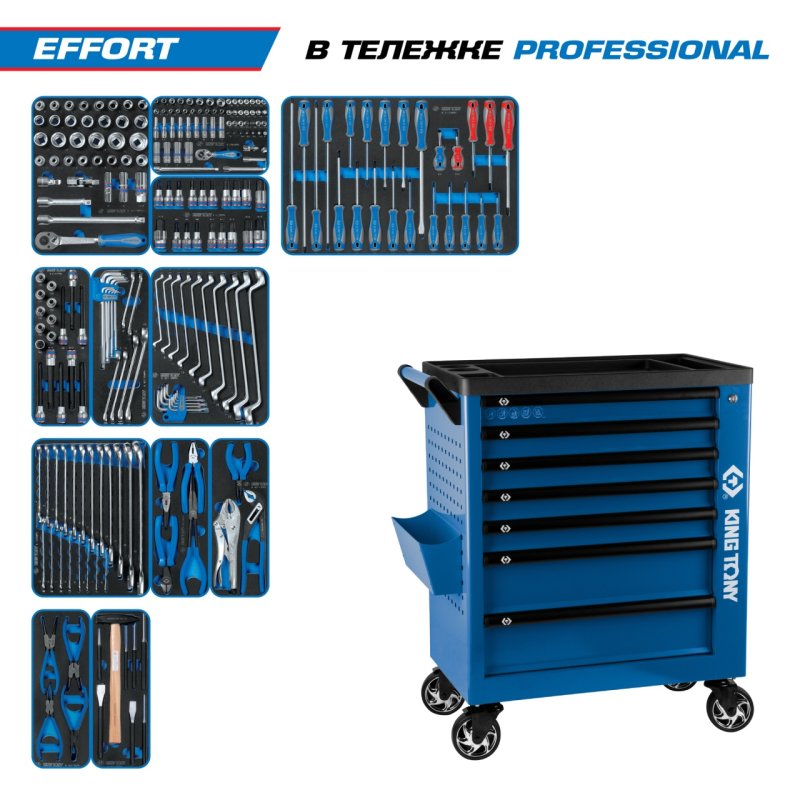 Набор инструментов 235 предметов, "EFFORT", в синей тележке KING TONY 9G38-235MRVB купить в Перми цена ✅ - Все для СТО