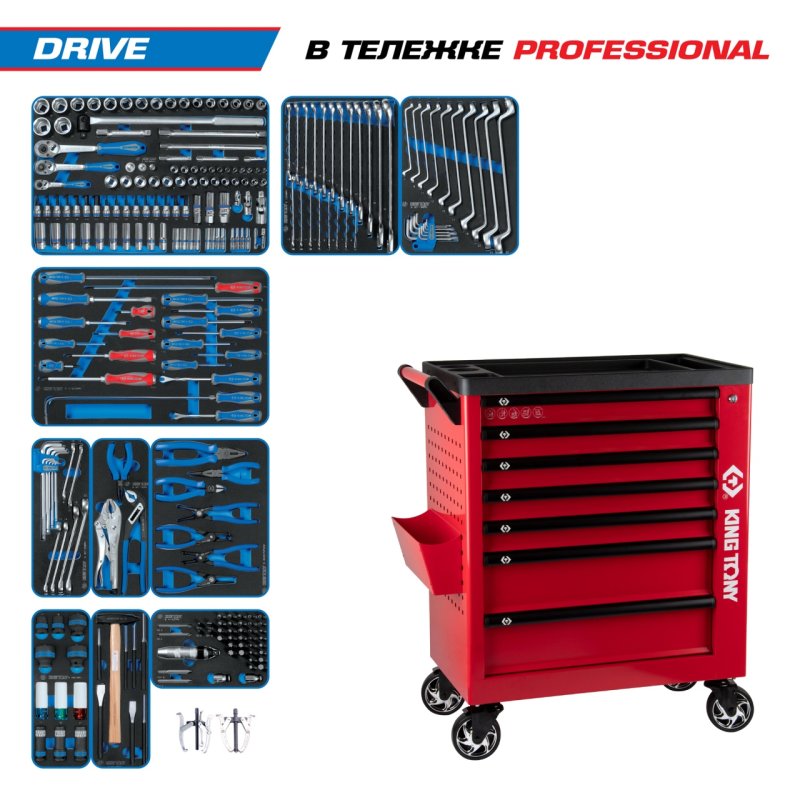 Набор инструментов 251 предмет, "DRIVE", в красной тележке KING TONY 9G38-251MRVR купить в Перми цена ✅ - Все для СТО