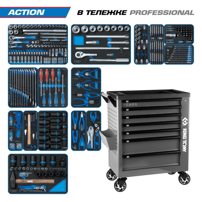 Набор инструментов 327 предметов, "ACTION", в серой тележке KING TONY 9G38-327MRVG купить в Перми цена ✅ - Все для СТО