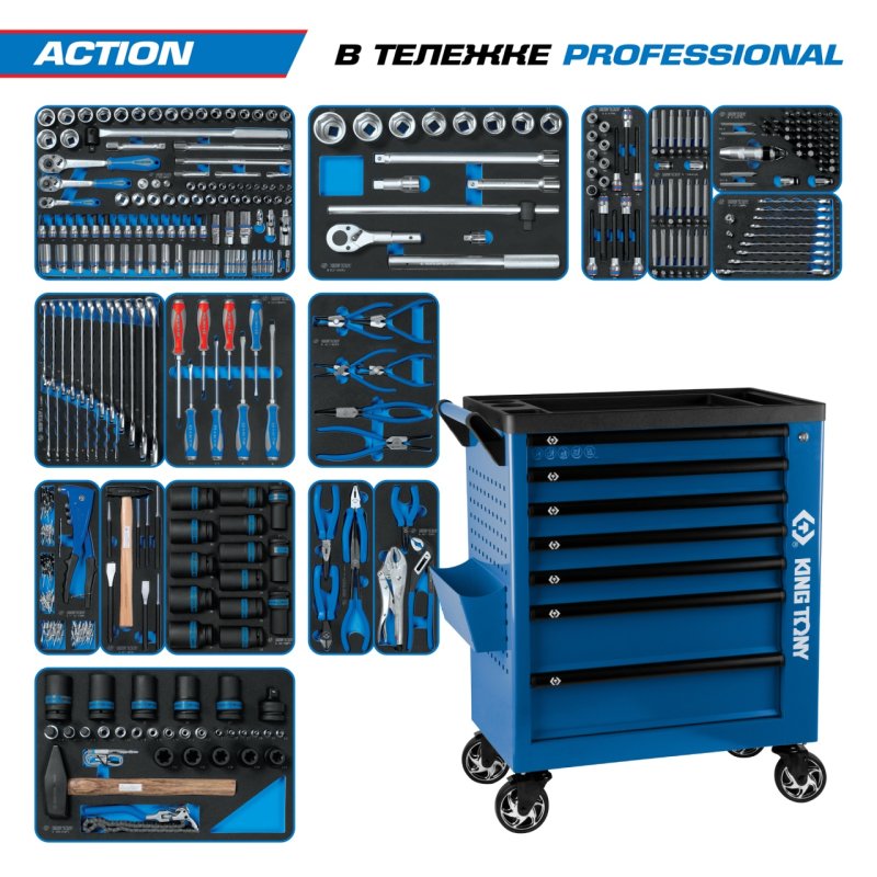 Набор инструментов 327 предметов, "ACTION", в синей тележке KING TONY 9G38-327MRVB купить в Перми цена ✅ - Все для СТО