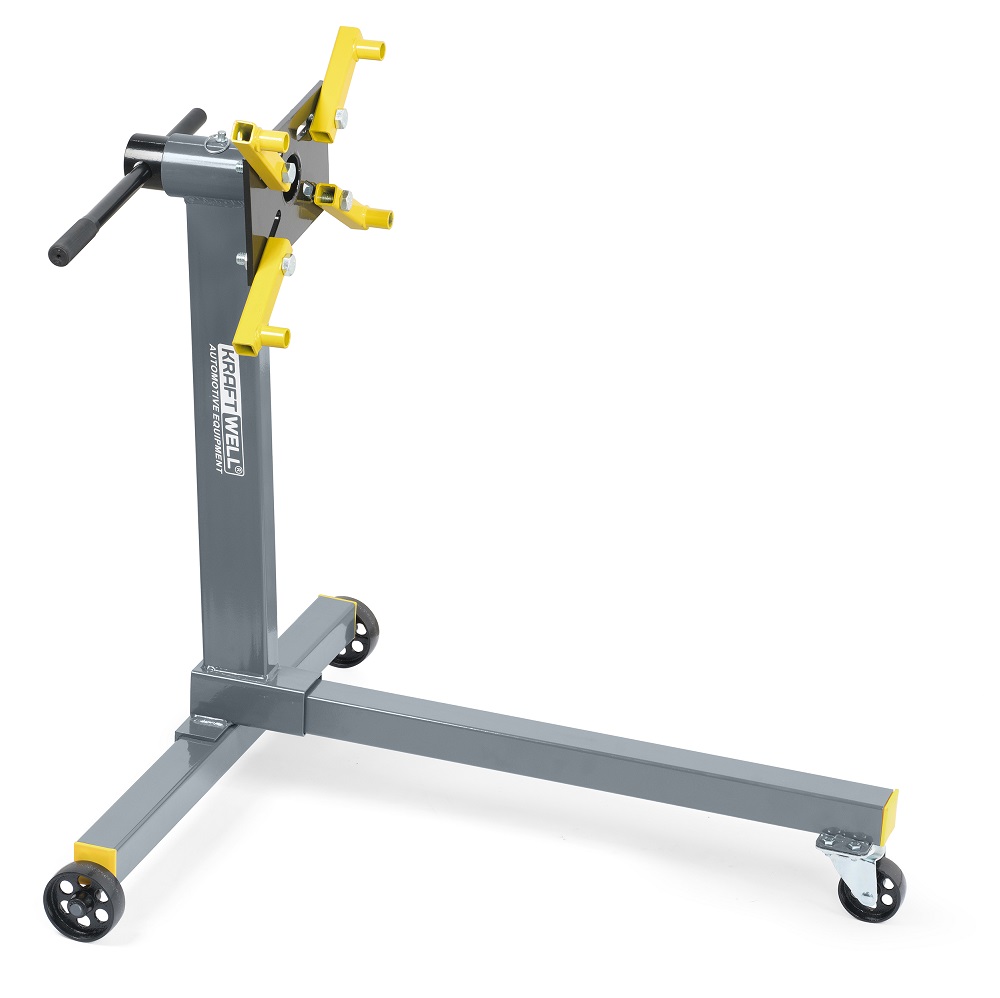 После демонтажа двигателя или коробки передач, для удобства разборки и последующей сборки, их необходимо надежно закрепить. В этом поможет стенд для разборки/сборки двигателя и коробок передач. Встречаются стенды различной грузоподъемности и конфигурации. Самым первым по этим параметрам в линейке является стенд для разборки/сборки двигателя и коробок передач марки KRAFTWELL, модельKRWES5. Его грузоподъемность 340 кг, а также универсальные регулируемые кронштейны, позволяют установить многие двигатели или коробки передач. Кроме этого, стенд оснащен поворотным механизмом, вращающимся на 360 градусов с возможностью фиксации для обеспечения легкого доступа к узлам двигателя. Устойчивое основание с поворотными колесами обеспечивает маневренность и удобство позиционирования относительно моторного отсека, а также легкость перемещения по цеху.