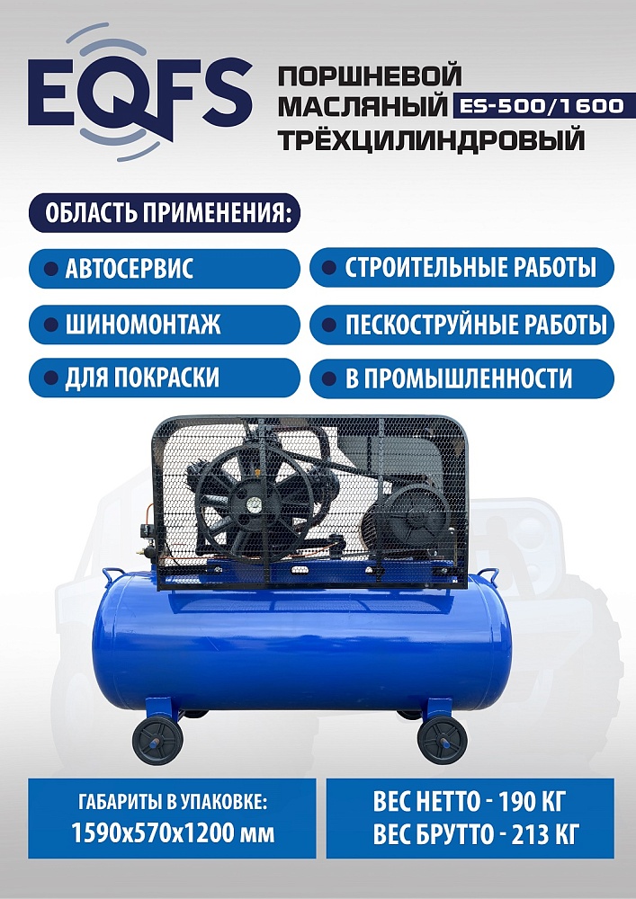 ES-500/1600 Компрессор поршневой трехцилиндровый купить в Перми цена ✅ - Все для СТО