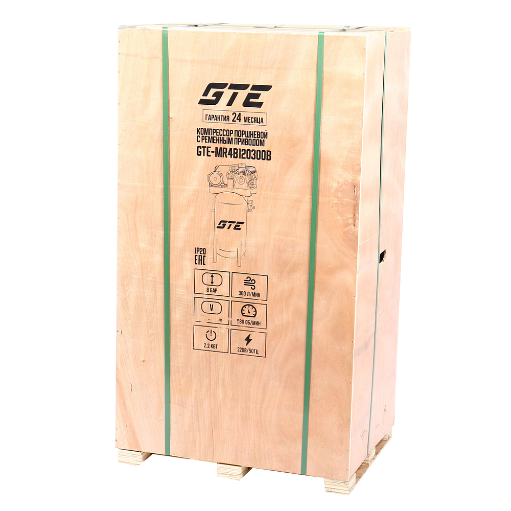 GTE-MR4B120300B Компрессор поршневой ременной 220В 300л/мин. ресивер-120л вертикальный