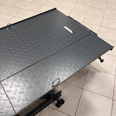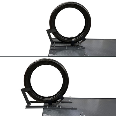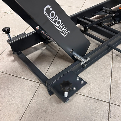 Подъемник оснащен механическим перекидным зажимом, имеющим достаточно широкий диапазон по размеру зажимаемых колес и возможность увеличения длины платформы на 200 мм благодаря выдвижной конструкции зажима. На платформе есть технический люк для облегчения демонтажа заднего колеса, но для удобства данной операции рекомендуется использовать любой из механических подъёмников.