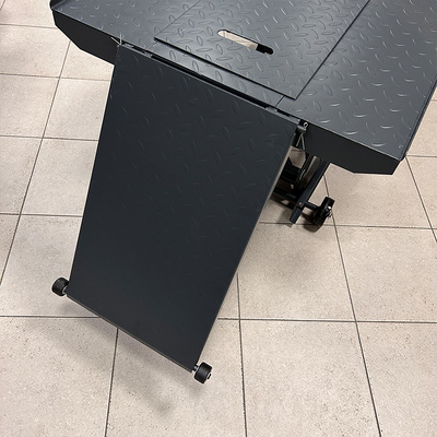 Устанавливается на твёрдую, ровную поверхность с возможностью перемещения (без техники) благодаря колёсной базе.
