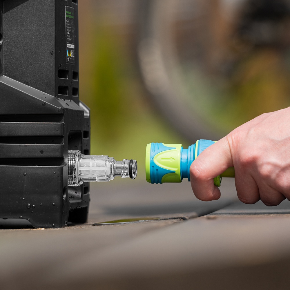 Моечная машина - 1 штШланг высокого давления - 1 штПистолет моечный с насадкой - 1 штВходной штуцер с фильтром - 1 штБыстросъёмный адаптер для входного шланга - 1 штПеногенератор - 1 штИгла для прочистки сопла - 1 штРуководство по эксплуатации с гарантийным талоном - 1 шт