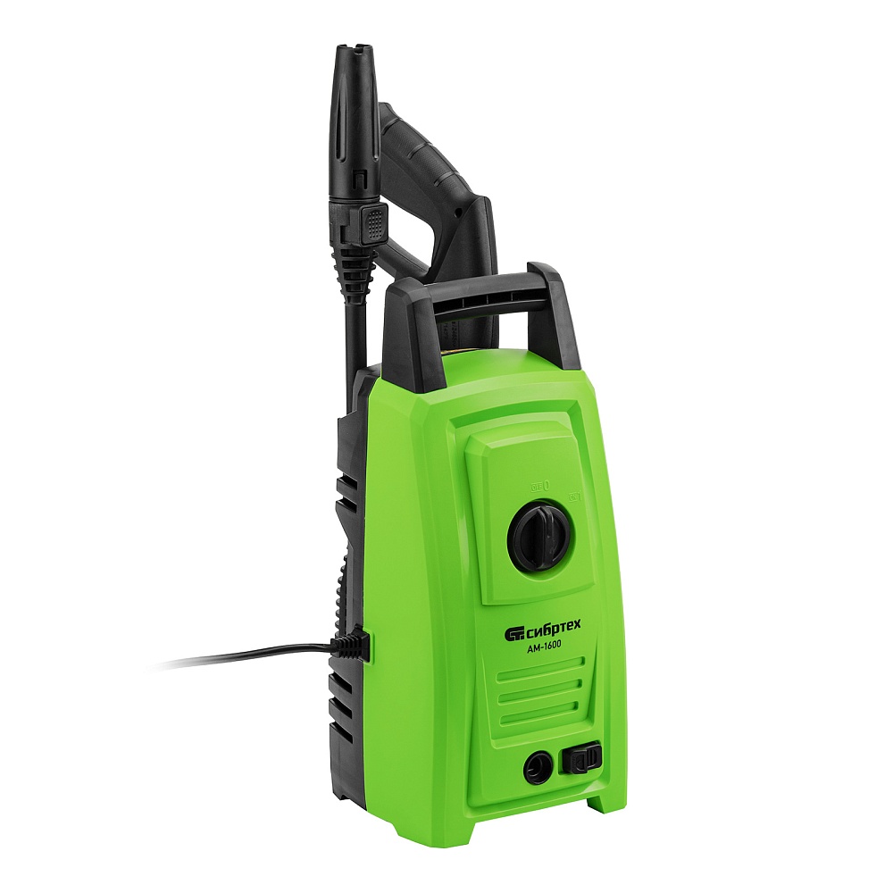 <p>Переносная моечная машина высокого давления Сибртех AM-1600 58224 мощностью 1600 Вт и производительностью 330 л/ч подает струю воды под давлением 130 бар. Позволяет быстро очистить садовые дорожки, забор, стены строений, садовый инвентарь, уличную мебель, кузов автомобиля. Машина подключается к водопроводу, а также способна работать в режиме самовсасывания — в этом случае в качестве источника воды можно использовать любую емкость. Устройство будет полезно владельцам дачных участков.</p><h2>Преимущества</h2><ul><li>Высокий ресурс — алюминиевая помпа выдерживает интенсивное использование.</li><li>Экологичность — во время работы машины отсутствуют вредные выхлопы и неприятный запах.</li><li>Термозащита — в случае перегрева двигатель отключается для предотвращения поломки.</li><li>Электробезопасность — токопроводящие элементы имеют двойную изоляцию.</li><li>Удобная регулировка струи — вращая корпус сопла, можно установить оптимальный вид распыления.</li><li>Эффективное очищение — в комплект поставки входит внешний пеногенератор, позволяющий использовать моющие средства.</li><li>Удобная работа в труднодоступных местах — на пистолет можно установить насадку-удлинитель.</li><li>Безопасность — блокировка рычага пистолета предотвращает случайный запуск.</li><li>Защита от засоров — входной штуцер имеет встроенный фильтр, задерживающий посторонние частицы.</li><li>Легкая подготовка к работе — быстросъемный адаптер позволяет подключить входной шланг одним движением.</li><li>Свободное передвижение по рабочей зоне — длина сетевого кабеля и шланга составляет 5 м, что позволяет реже перемещать мойку во время работы.</li><li>Простое обслуживание — в комплект поставки входит игла для прочистки сопла.</li><li>Продуманное хранение и транспортировка — на корпусе имеется удобная ручка, для кабеля и шланга предусмотрены специальные кронштейны.</li></ul>