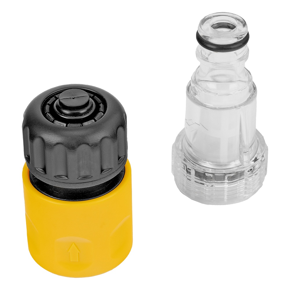Мойка высокого давления, Шланг высокого давления, Пистолет моечный, Насадка-удлинитель, Форсунки 4 шт., Пеногенератор с бачком для моющего средства, Входной штуцер с фильтром, быстросъемный коннектор шланга, Игла для прочистки сопла, Инструкция по эксплуатации с гарантийным талоном