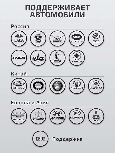 - Поддерживаемые шины данных: - 13 x ISO-9141/ISO-14230 (K-LINE)