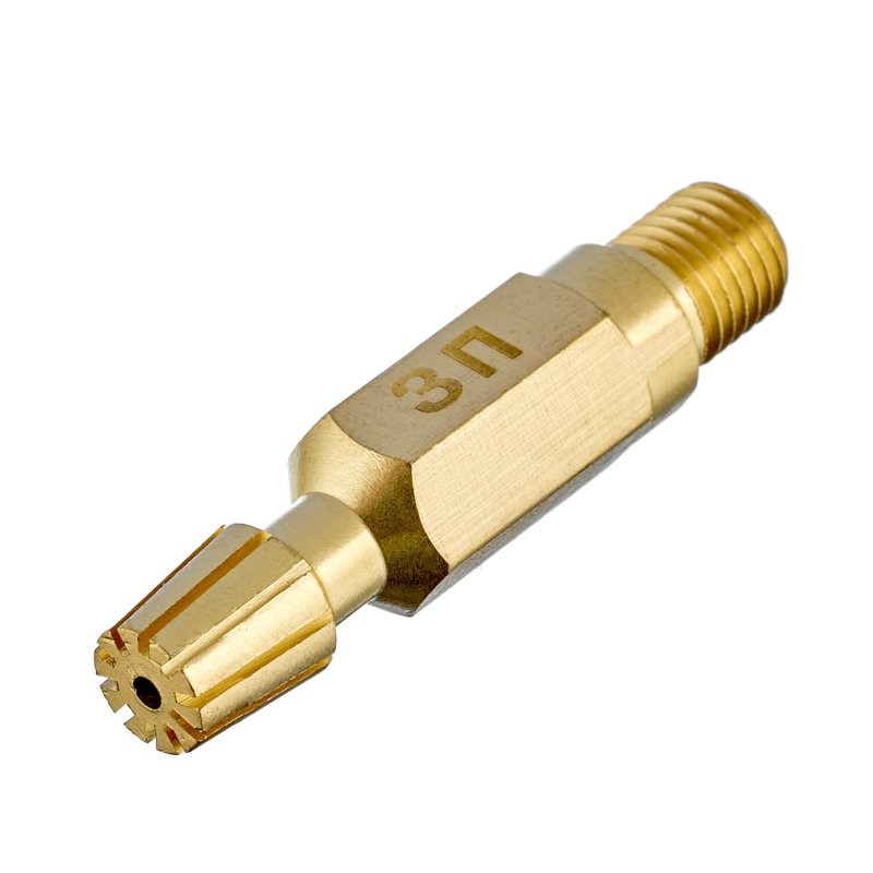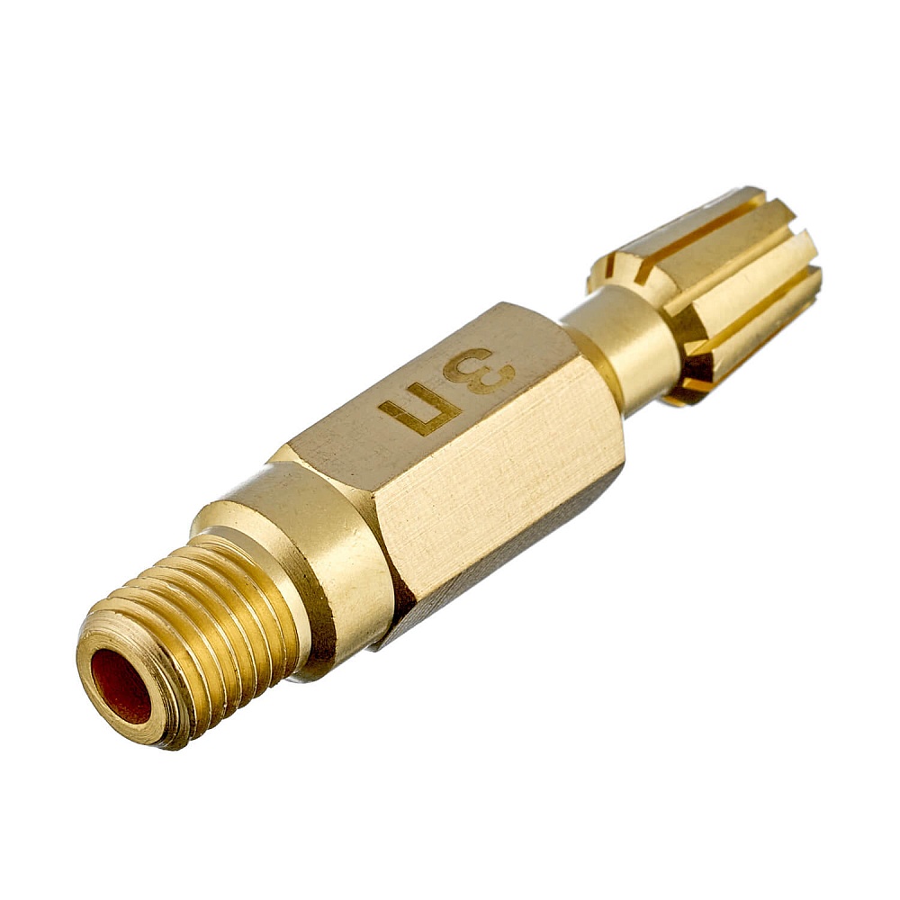 Латунный внутренний мундштук №3П для инжекторных резаков серии Р3П-01, Р3П-02, Р3П-22 и Р3П-03. Толщина разрезаемого металла 30–50 мм. Мундштук с шлицевыми пазами для выхода подогревающего пламени.