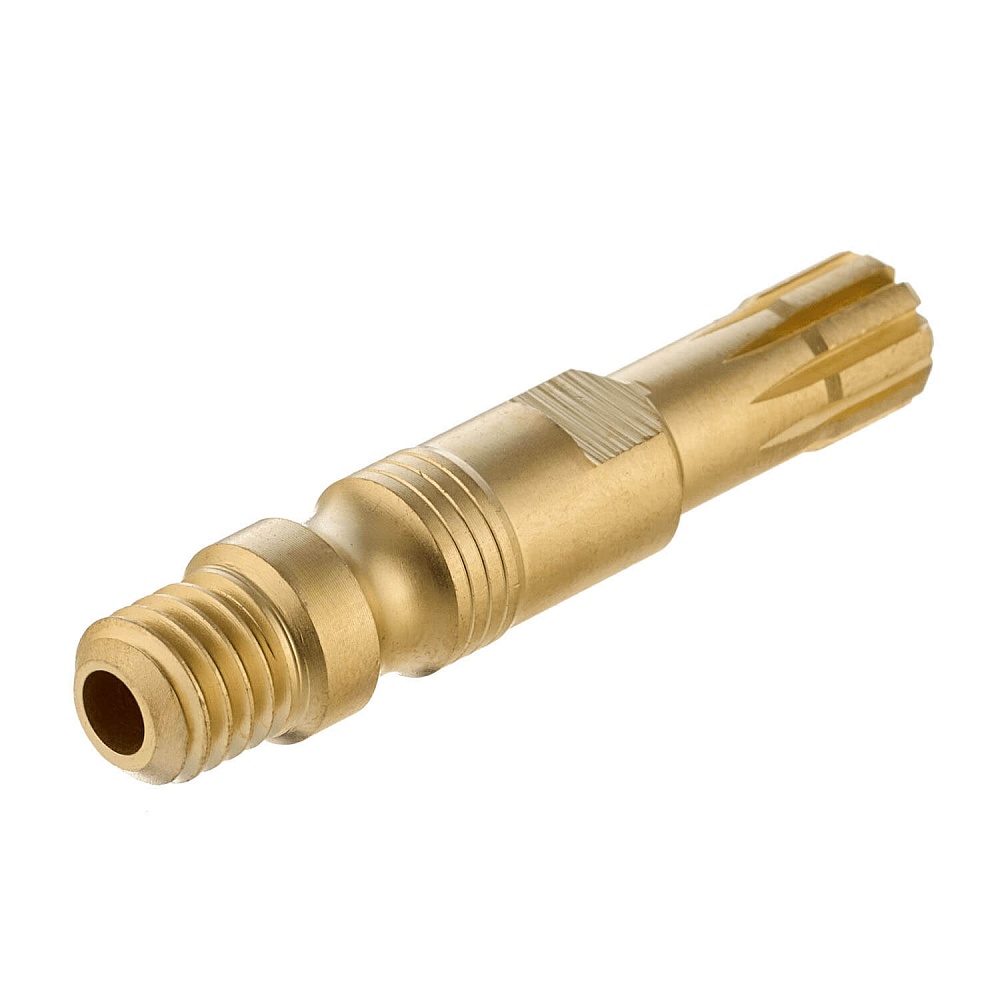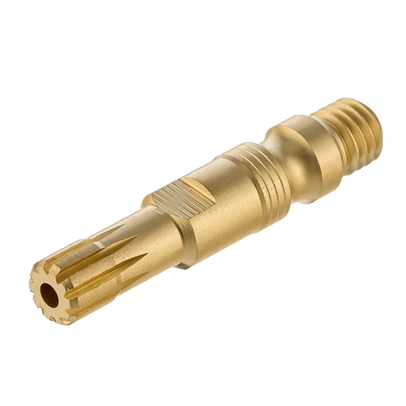 Латунный внутренний мундштук №5 для бензинового резака РБ-02 (тип «Луч»). Толщина разрезаемого металла 100–200 мм. Мундштук присоединяется к катушке резака РБ-02 при помощи резьбы М8х1 мм, а к самой головке резака при помощи наружной резьбы М8х1,25.