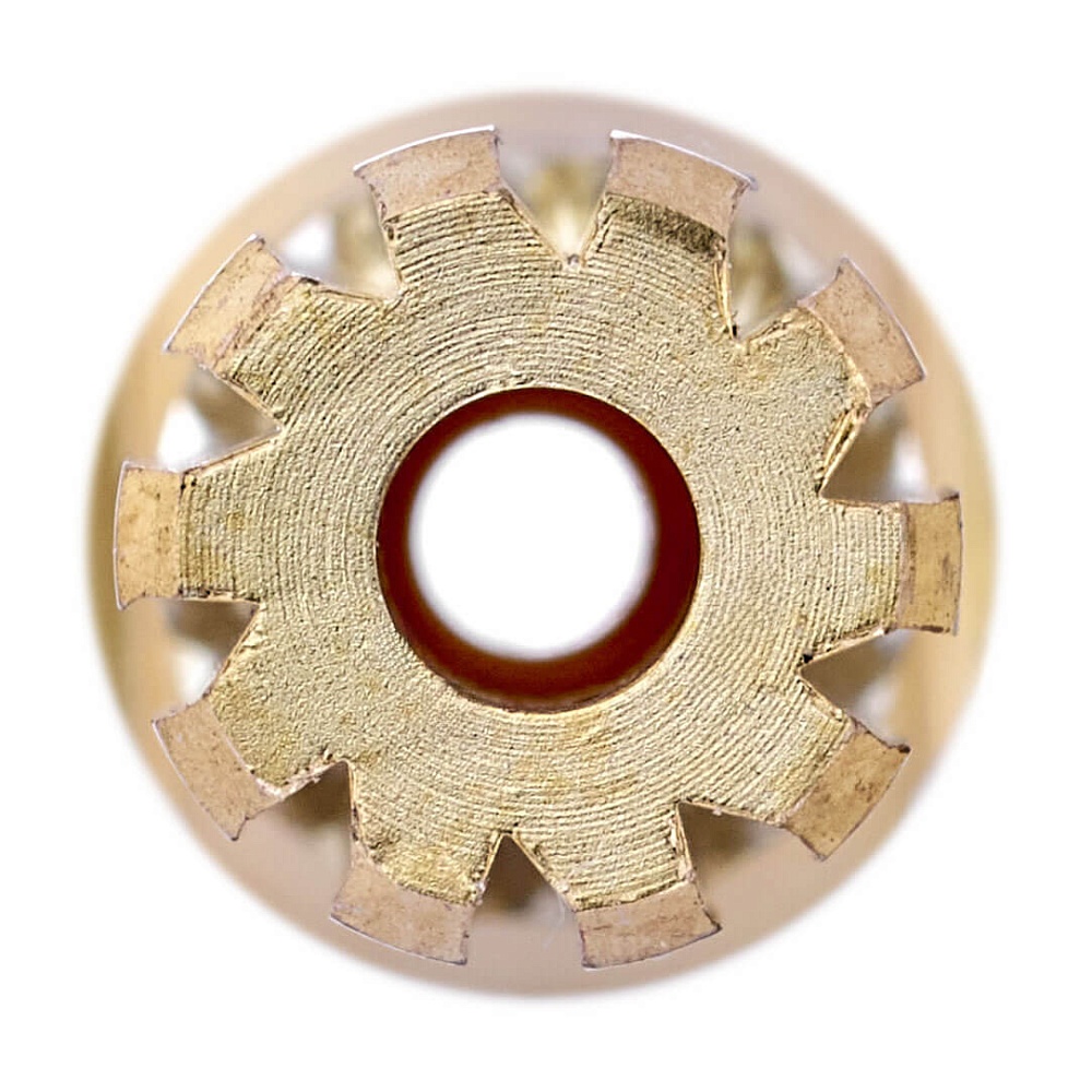 Латунный внутренний мундштук №5К для керосинового резака РК-300. Устанавливаются с мундштуком наружным стандартным к РК-300 №2. Толщина разрезаемого металла 100–200 мм. Мундштук с шлицевыми пазами для выхода подогревающего пламени. Внутренний мундштук имеет присоединительную резьбу М8х1 для крепления к головке керосинореза.