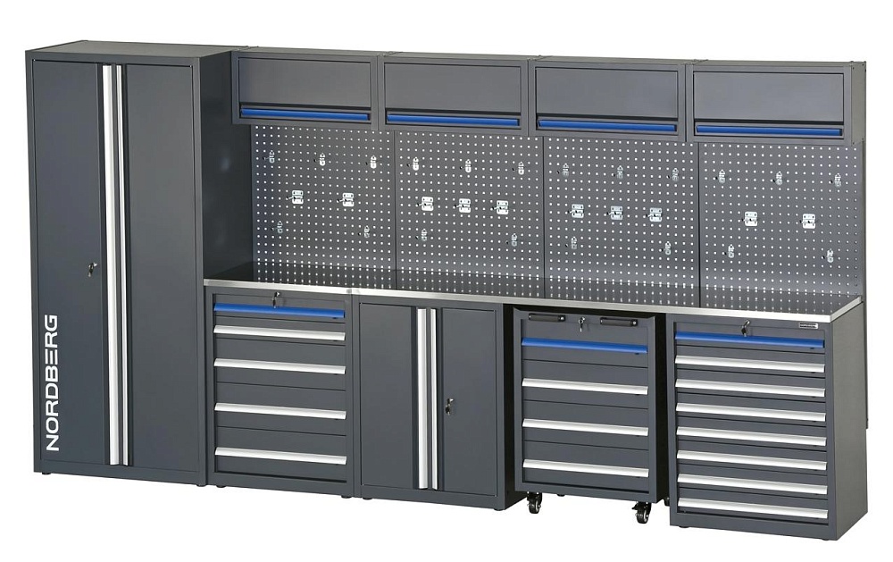 Набор мебели NORDBERG TT113 – уникальная комбинированная модульная мебель, предназначенная для автосервисов, студий детейлинга, личных гаражей.