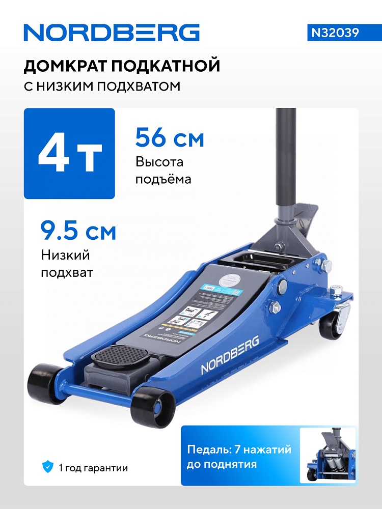 Домкрат подкатной 4 т, низкий подхват, педаль NORDBERG N32039 купить в Перми цена ✅ - Все для СТО