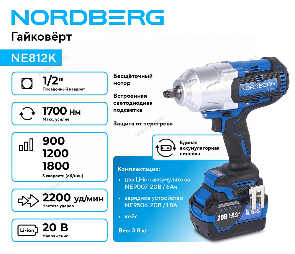 Предназначен для заворачивания и отворачивания крепёжных соединений болтов, гаек, шпилек с применением ударных головок.
