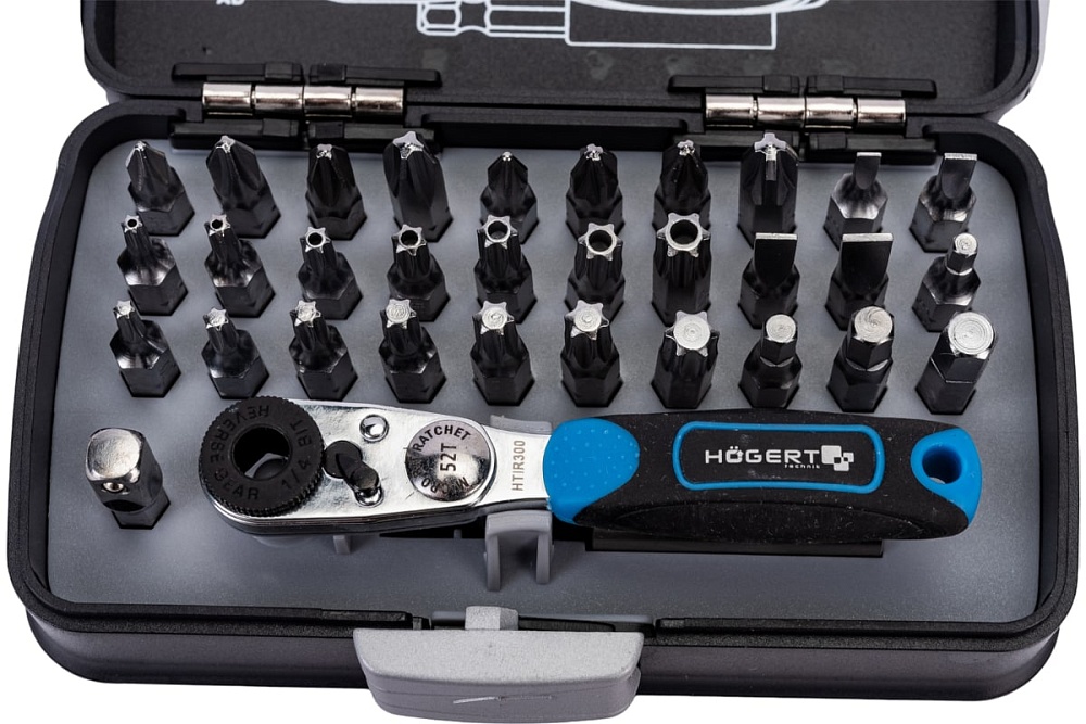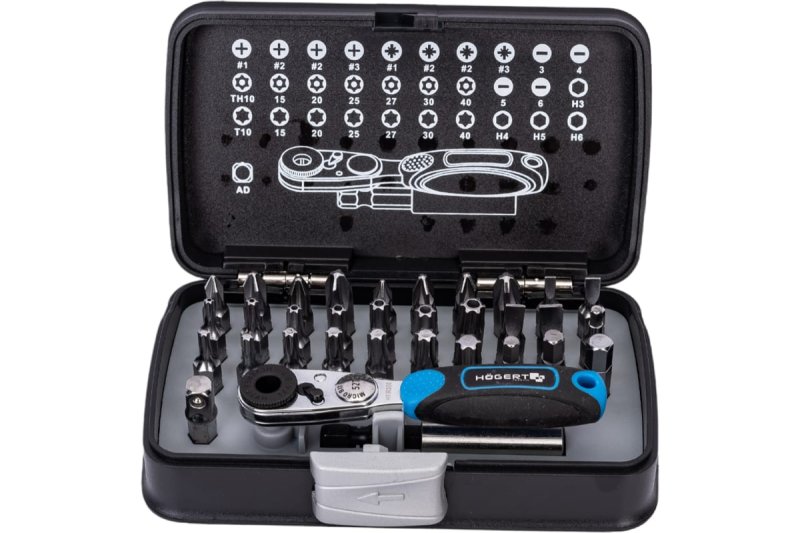 HOEGERT Набор бит с трещоткой 1/4", SL, PH, PZ, HEX, Torx, Torx c отверстием, 33 шт. купить в Перми цена ✅ - Все для СТО