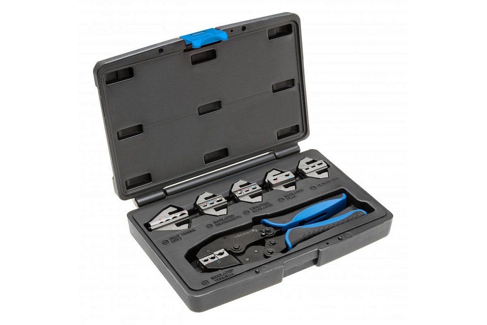 HOEGERT Пресс-клещи для обжима проводов со сменными матрицами, 6 шт. купить в Перми цена ✅ - Все для СТО