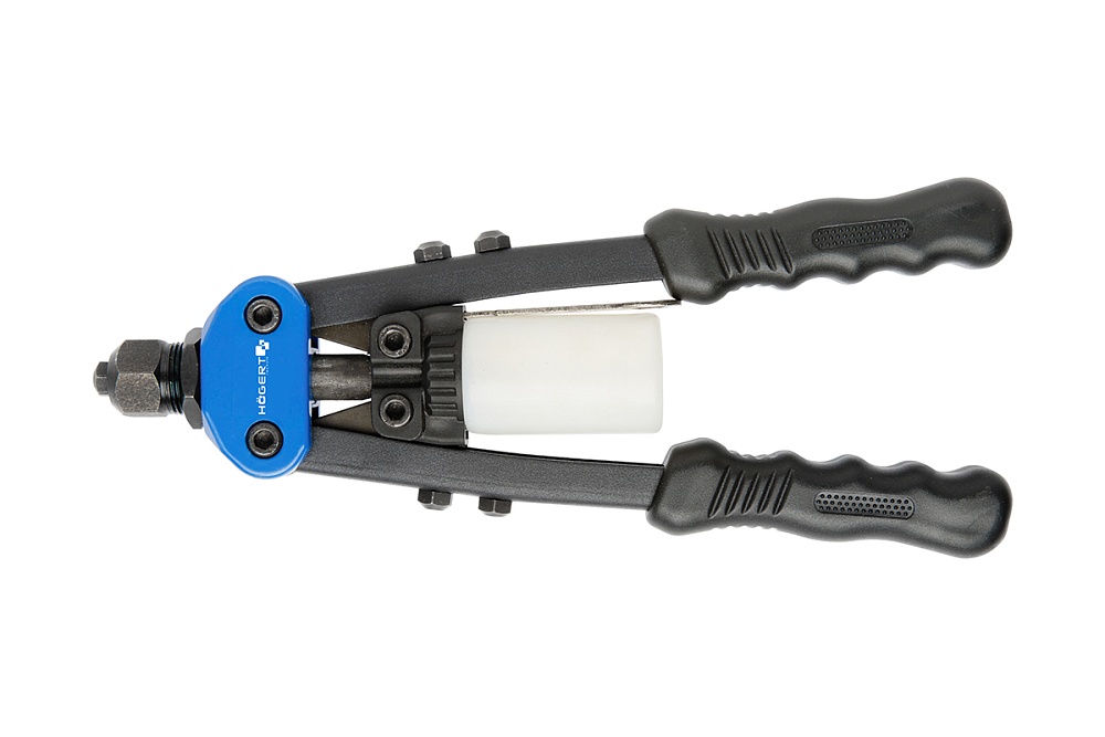 HOEGERT Заклепочник двуручный, короткий, 250 мм, для стальных и алюминиевых заклепок, 5 сменных головок, 2,4 - 4,8 мм купить в Перми цена ✅ - Все для СТО