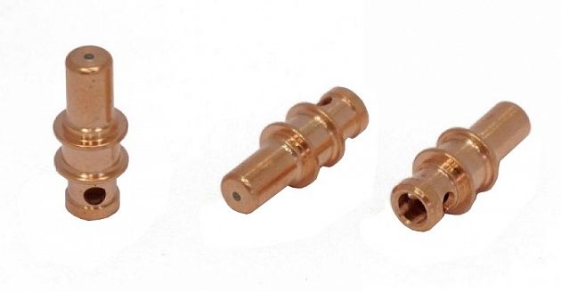 Катод - расходная часть плазмотрона. Оснастку изготавливают из сплава меди и латуни. Данный сплав обладает отличными показателями токопроводимости, высокими прочностными характеристиками, а так же способствует лучшему теплоотводу. Чаще всего для работы в нейтральных плазмообразующих средах в качестве сердечника электрода используют вольфрам, в окислительных средах применяют катоды из циркония или гафния.
