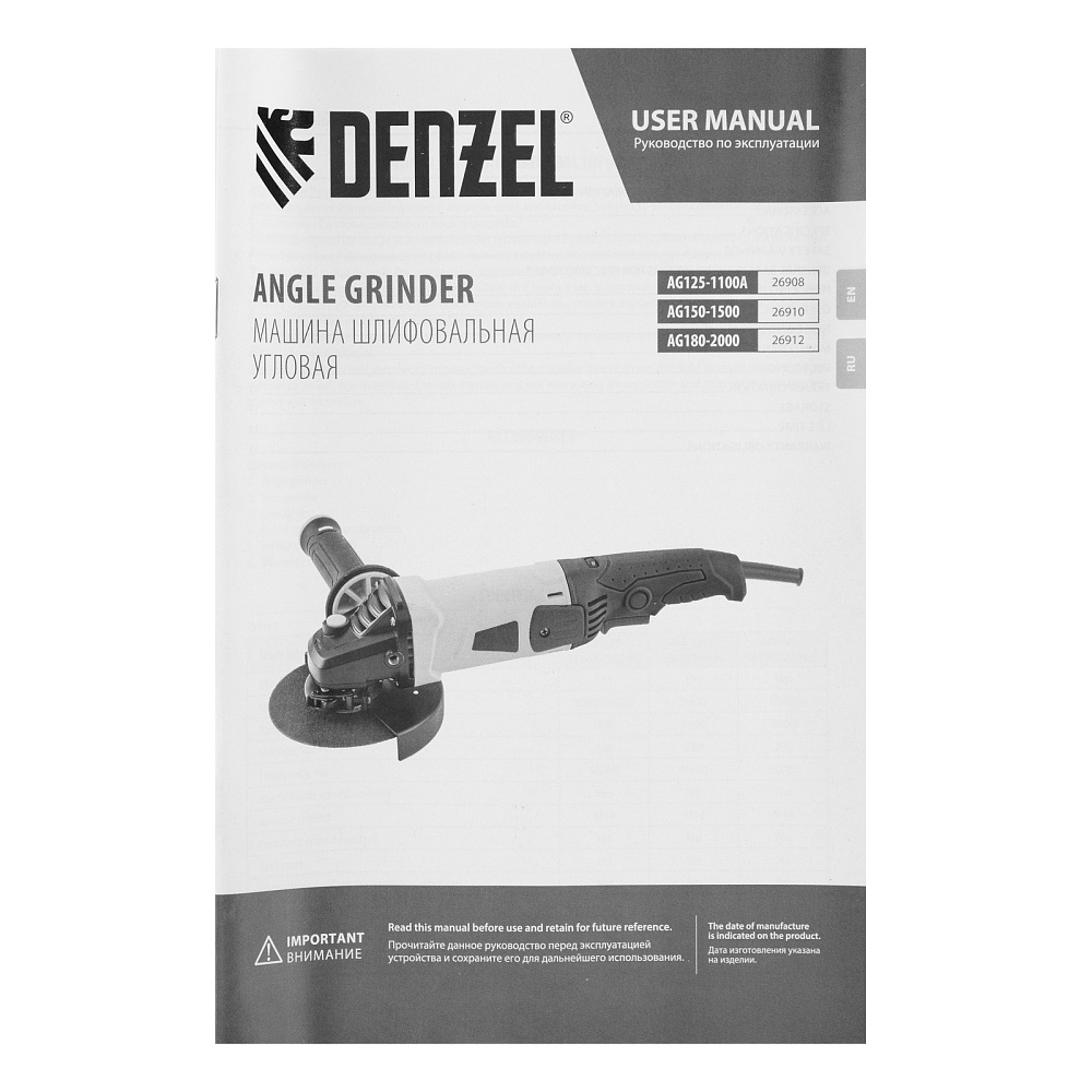 Машина шлифовальная угловая AG150-1500, 1500 Вт, 150 мм, 8500 об/мин Denzel