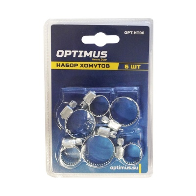 OPT-HT06 Хомуты червячные набор 6шт. 10-27 OPTIMUS купить в Перми цена ✅ - Все для СТО