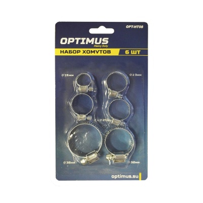 OPT-HT08 Хомуты червячные набор 6шт. 10-38 OPTIMUS купить в Перми цена ✅ - Все для СТО