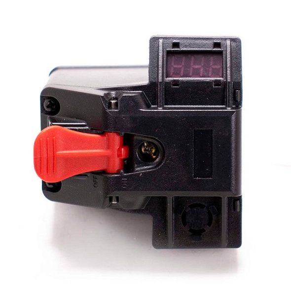 Модернизированный прессостат с индикацией напряжения для компрессоров AURORA PASSAT BLACK. Информационное табло отображает значение напряжения в процессе работы компрессора. Устройство поможет оператору правильно определить возможности сети, что особенно важно во время запуска аппарата.
