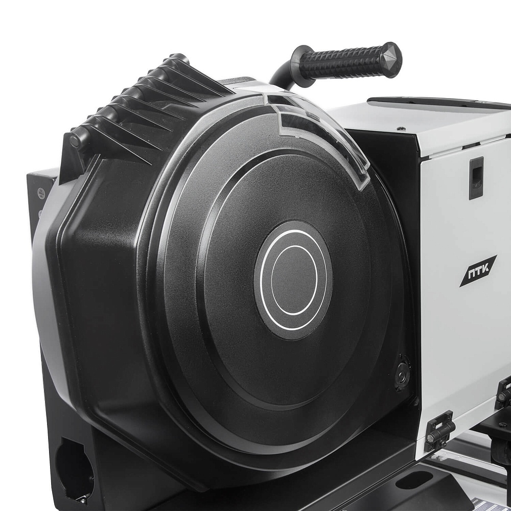 Аппарат оснащен металлическим 4-х роликовым механизмом подачи проволоки. В механизме установлены два ролика с габаритами 30х10х12 для стальной проволоки диаметром 1,0–1,2 мм и два ролика для алюминиевой проволоки 30х10х12 диаметром 1,0–1,2 мм идут в комплекте. Есть кнопка протяжки проволоки и кнопка проверки газа перед стартом работ.