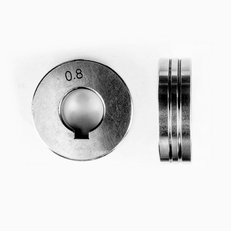 Ролик подачи для аппаратов полуавтоматической сварки является сменной деталью подающего механизма, которая отвечает за стабильную и равномерную доставку электродной проволоки через горелку в зону сварки. Размер канавки ролика подбирается в соответствии с диаметром сварочной проволоки. Наиболее распространены подающие ролики под проволоку: 0.6 / 0.8 / 0.9 / 1.0 / 1.2 / 1.6 мм