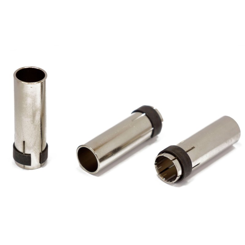 Сопло MIG-MAG - это расходная часть горелки, которая отвечает за формирование струи защитного газа в процессе полуавтоматической сварки. В процессе работы сварочные брызги налипают на сопло, а продолжительные работы на максимальных токах выжигают сопло изнутри. Поэтому деталь приходится периодически менять. Для того, чтобы продлить жизнь расходнику – сопло необходимо время от времени зачищать.