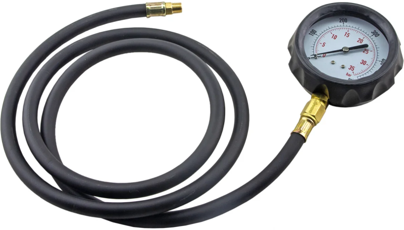 • Манометр с диапазоном измерений от 0 до 35 Bar, позволяют проводить тестирование для большинства дизельных и бензиновых двигателей различных марок автомобилей.
