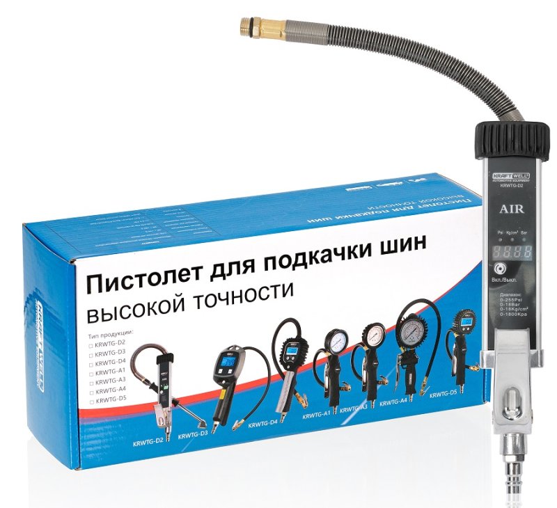KRWTG-D2 KraftWell Пистолет для подкачки шин. В цветной коробке. Цифровой манометр. Давление до 18 бар.