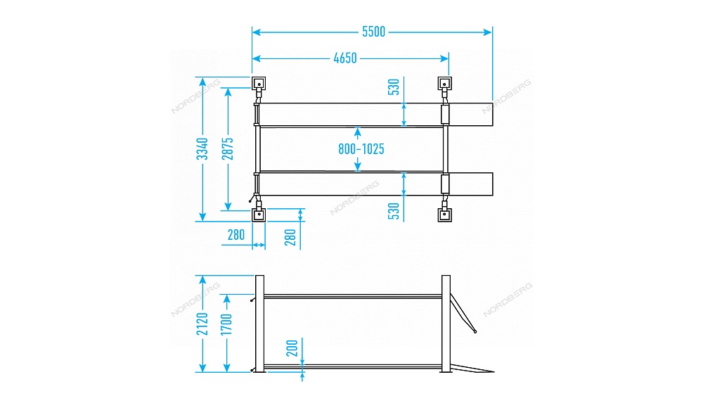• Регулируемое расстояние между платформами — 800, 900 или 1025 мм, что обеспечивает универсальность и позволяет точно подстроить подъёмник под различные типы автомобилей, от седанов до лёгких грузовиков;