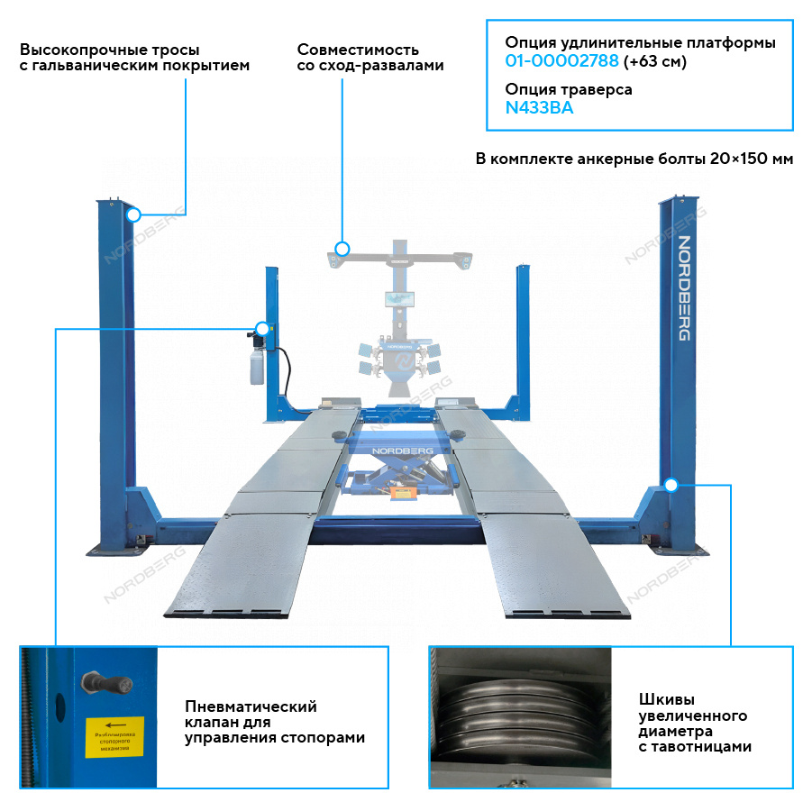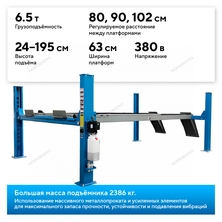 Подъемник четырехстоечный 6,5 т, для сход-развала, синий NORDBERG 4465B_N433BA купить в Перми цена ✅ - Все для СТО