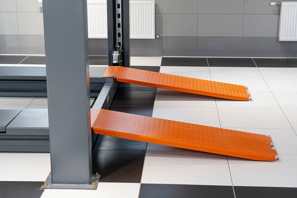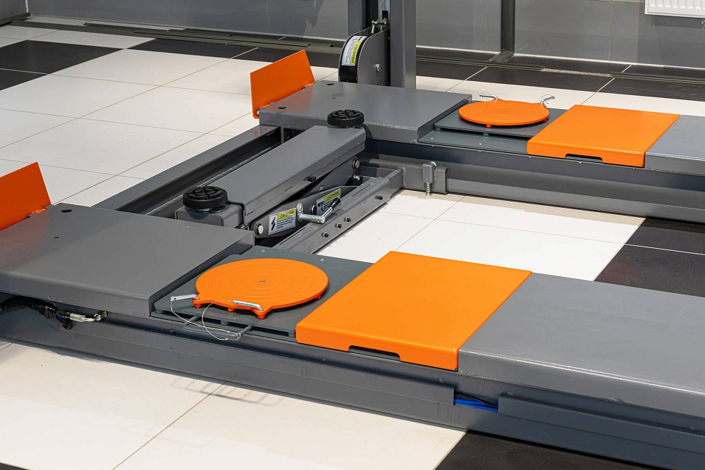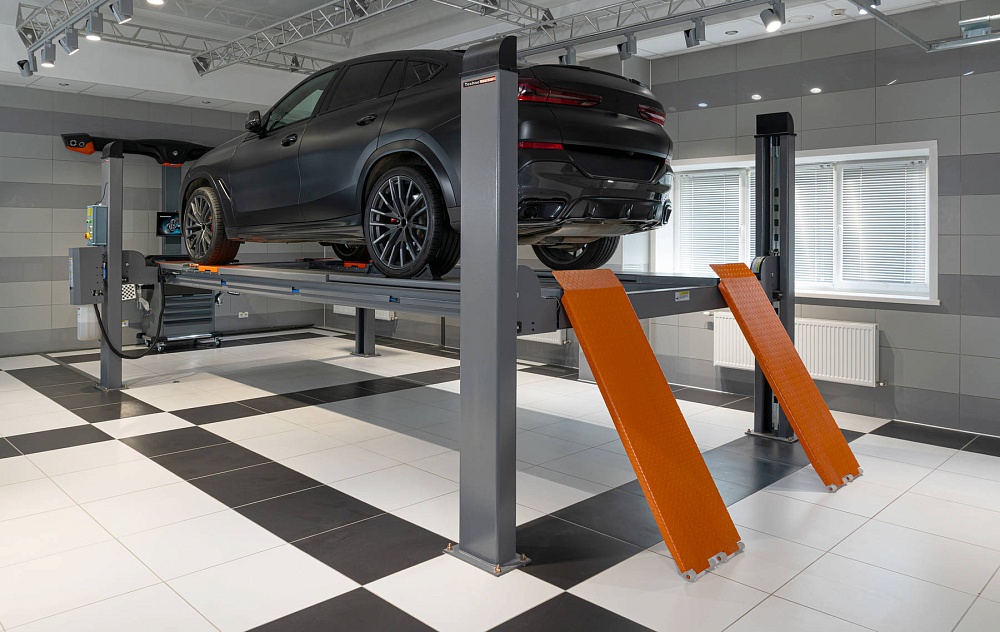 Подъёмник позволяет проводить диагностику, обслуживание и ремонт легковых автомобилей и небольших грузовиков, в частности, проводить работы по измерению и регулировке углов установки колёс.